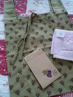 葡萄柄の“エコバッグ”と“ハンドタオル”と“カモミールの種”をいただきました